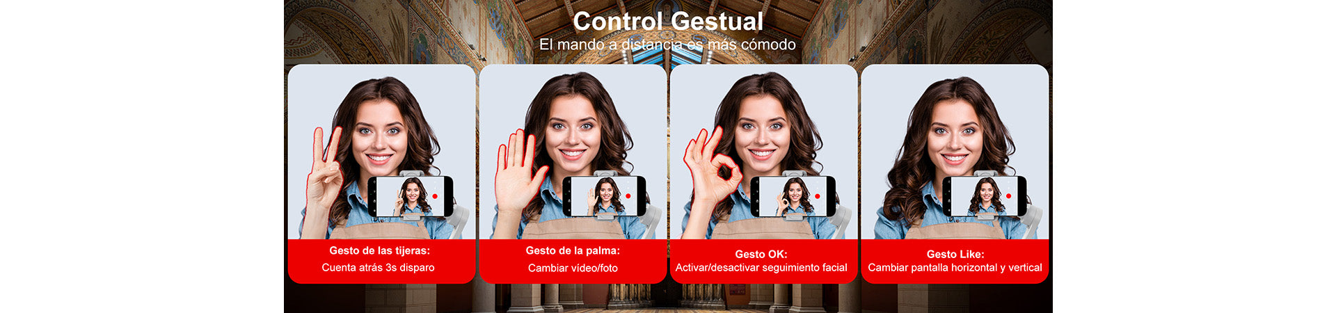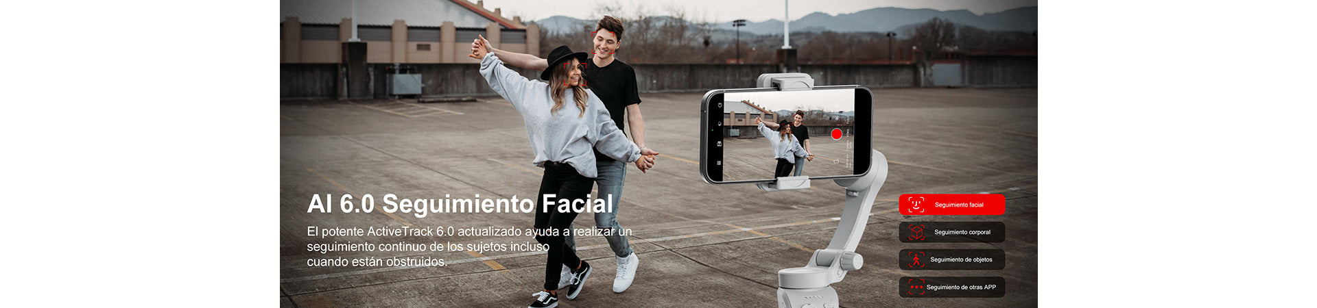 - 6.0AI SEGUIMIETO INTELIGENTE DE PANTALLA Y CONTROL DE GESTOS: El sistema de seguimiento incorporado en el cabezal del estabilizador para celular le permite realizar de forma precisa y automática cuatro modos de seguimiento facial, seguimiento corporal, seguimiento de objetos y seguimiento de terceros en tiempo real simplemente haciendo clic en el objeto objetivo en la pantalla, lo que satisface sus diferentes necesidades de disparo. El estabilizador para móvil te permite hacer fotos más creativas. Función de control de gestos, selfie stick estabilizador haciendo el correspondiente control intuitivo de mano, responderá a capturar fácilmente las tomas más creativas.