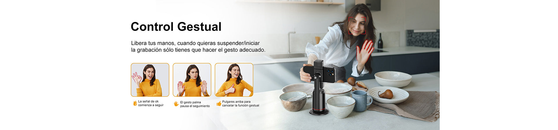 - 【AI Upgraded Intelligent Face & Body Tracking】360°Auto Face Tracking El sistema AI altamente sensible del trípode se actualiza y gira automáticamente según los movimientos de tu cara y cuerpo. También puede controlarlo usando gestos simples. Es fácil disparar con el mini control remoto incluido. Con el trípode de seguimiento facial, puede liberar las manos para las videollamadas y las instantáneas (gesto de OK para iniciar, gesto de palma abierta para pausar).
