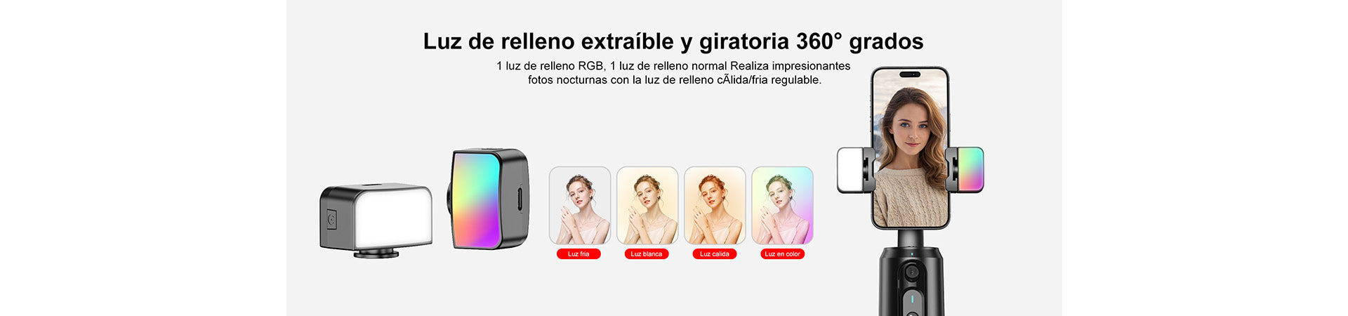 Estabilizador para Celular de Seguimiento Facial,Sobremesa Soporte para Selfie Tripode con luz de Relleno RGB y Blanca,Seguimiento Inteligente y Control de Gestos Rotación de 360°,sin App