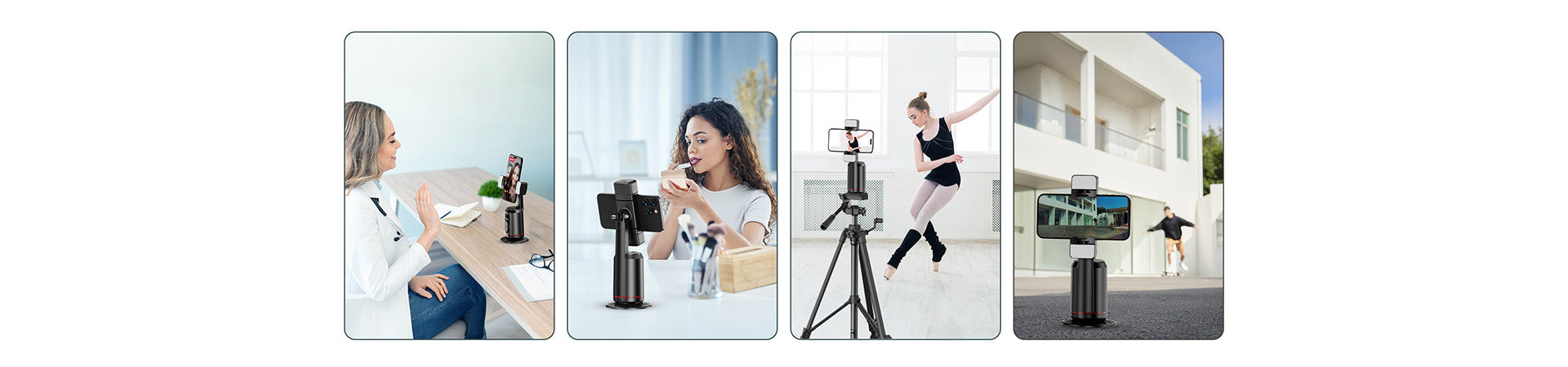 - 【No necesita descargar apps】Tripie de seguimiento iPhone tiene incorporado el chip inteligente AI, el trípode de seguimiento automático es más sensible, compatible con todas las aplicaciones de vídeo, como TikTok, Instagram, Facebook, Zoom, transmisión en vivo, fotografía, toma de fotografías, videollamadas y grabación de vídeo.