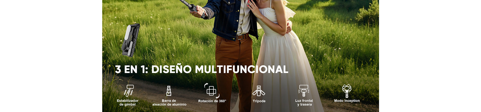 - 3 en 1 Estabilizador para Celular: El selfie stick extensible 3 en 1 ofrece tres formas diferentes: estabilizador, palo extensible y trípode de mesa. El estabilizador para teléfono móvil utiliza un motor de precisión de un eje, con función de estabilización que proporciona estabilidad y tecnología de auto-balanceo, permitiéndote tomar fotos como un profesional tanto en interiores como exteriores