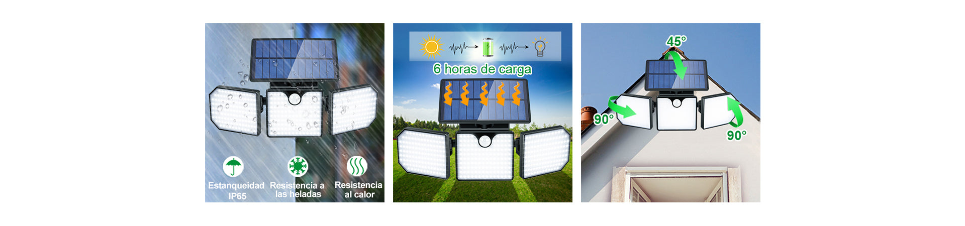 WEATHER-RESISTANT OUTDOOR LIGHTS: Our outdoor motion solar lights come with a rechargeable battery and are made from durable ABS material, ensuring these battery-powered solar floodlights withstand cold, rainy weather. IP65 waterproof outdoor solar lights work perfectly even on stormy days.